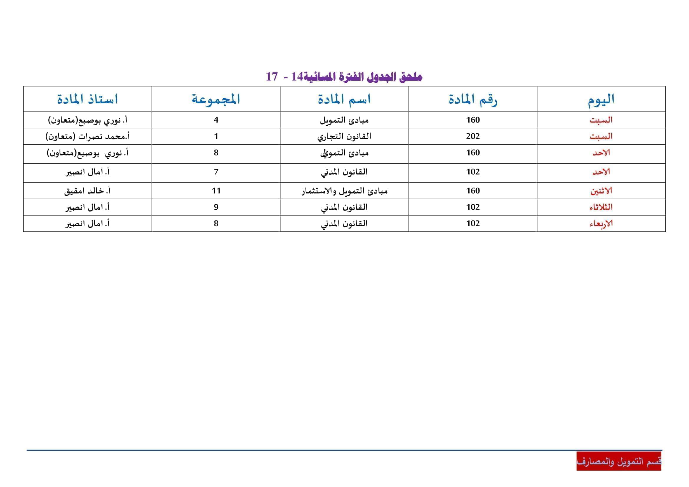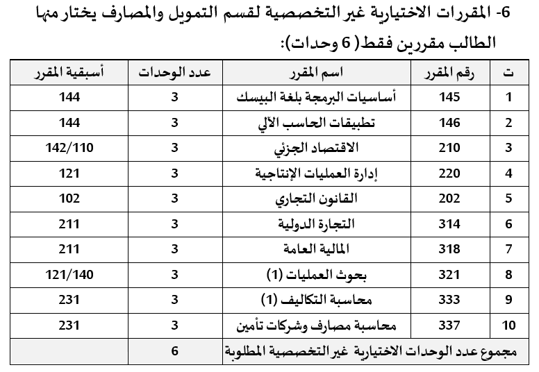 6- المقررات الاختيارية غير التخصصية لقسم التمويل والمصارف 6- المقررات الاختيارية غير التخصصية لقسم التمويل والمصارف