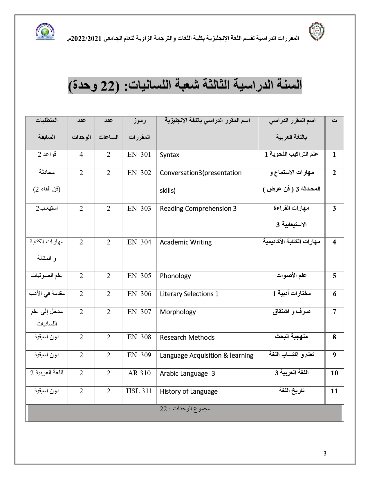 - تمكين الطلبة من تطوير معرفتهم باللغة الإنجليزية و اللغويات و الأدب الإنجليزي.