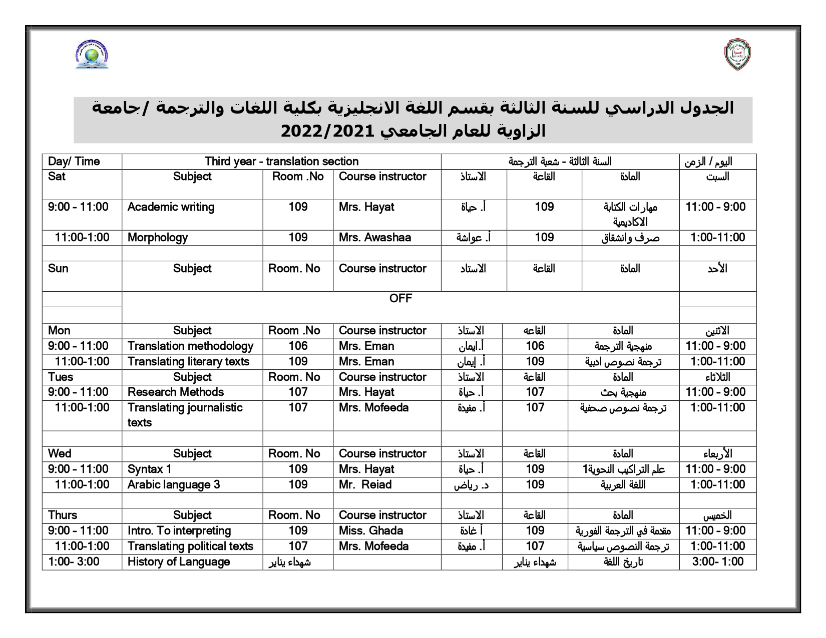 - ربط مقررات القسم بشكل عام و شعبة الترجمة بشكل خاص باحتياجات سوق العمل و متطلبات التنمية.