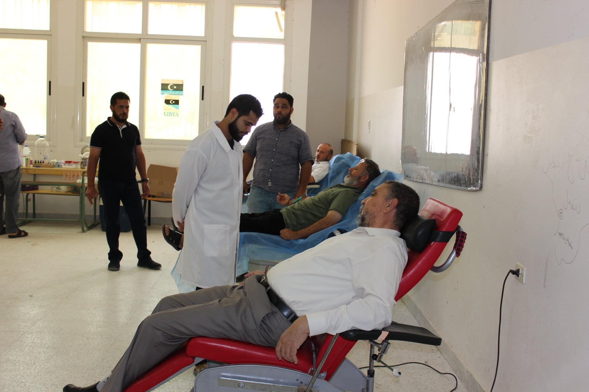 في اطار عمل كلية الاقتصاد الزاوية وادراكاً منها بالمسؤولية الاجتماعية التي تقع علي عاتقها و مساهمة منها في خدمة المجتمع والبيئة .قامت ادارة كلية الاقتصاد بتنظيم حملة تبرع بالدم يوم الخميس الموافق 18/7/2019 وذلك لدعم مصرف الدم بمستشفى الزاوية التعليمي في ظل الطلب المتزايد خلال هذه الفترة .وقد تنادى أعضاء هيئة التدريس والموظفين وطلبة الكلية بالمساهمة والتبرع لهذه الحملة . وقد أكد السيد عميد الكلية د. الصديق الكيلاني بدورية هذه الحملات وأنه سوف يتم تنظيم حملات تبرع بالدم كل ستة أشهر بالإضافة إلى جملة من النشاطات الأخرى التي تخدم المجتمع و البيئة
