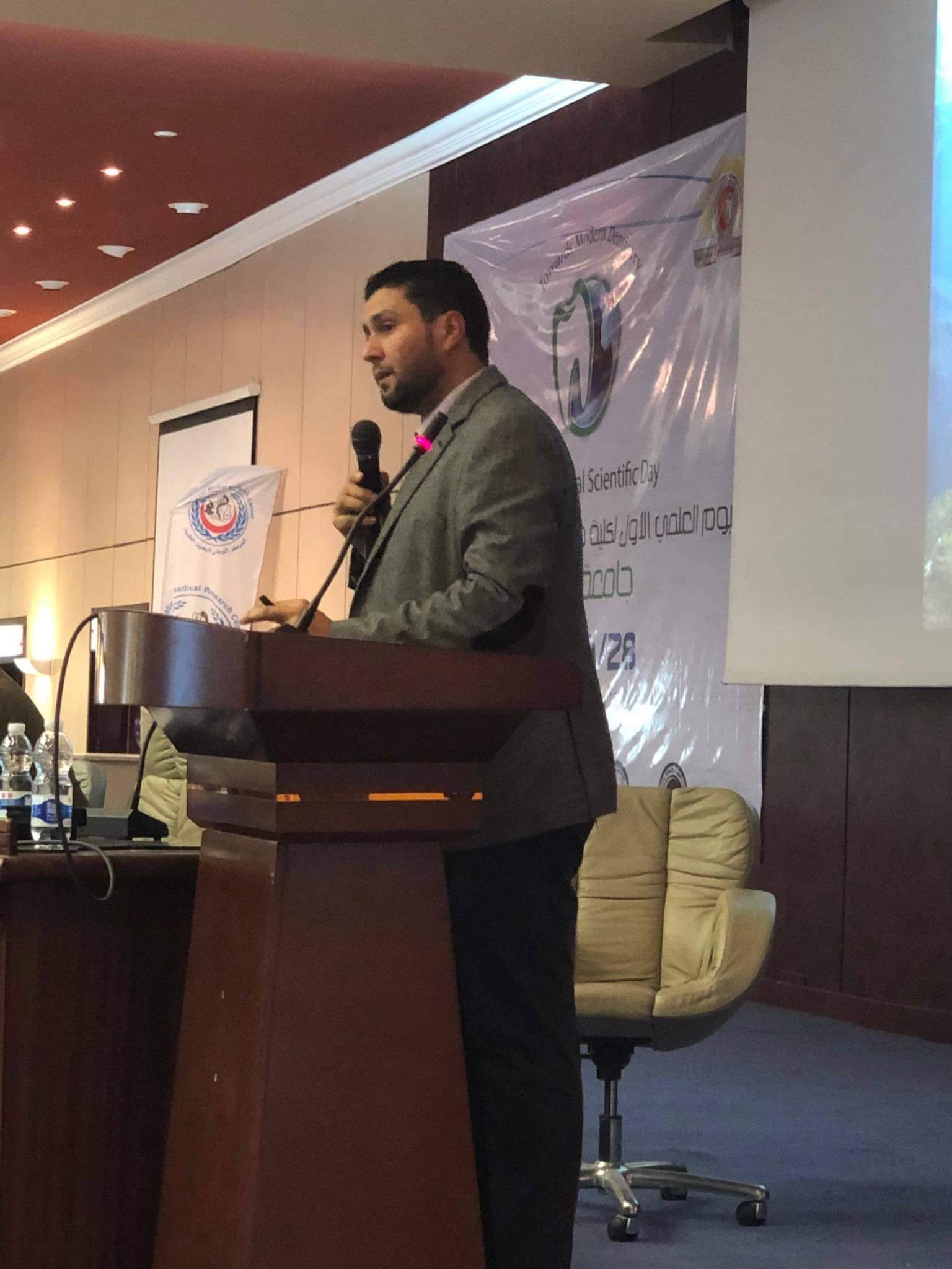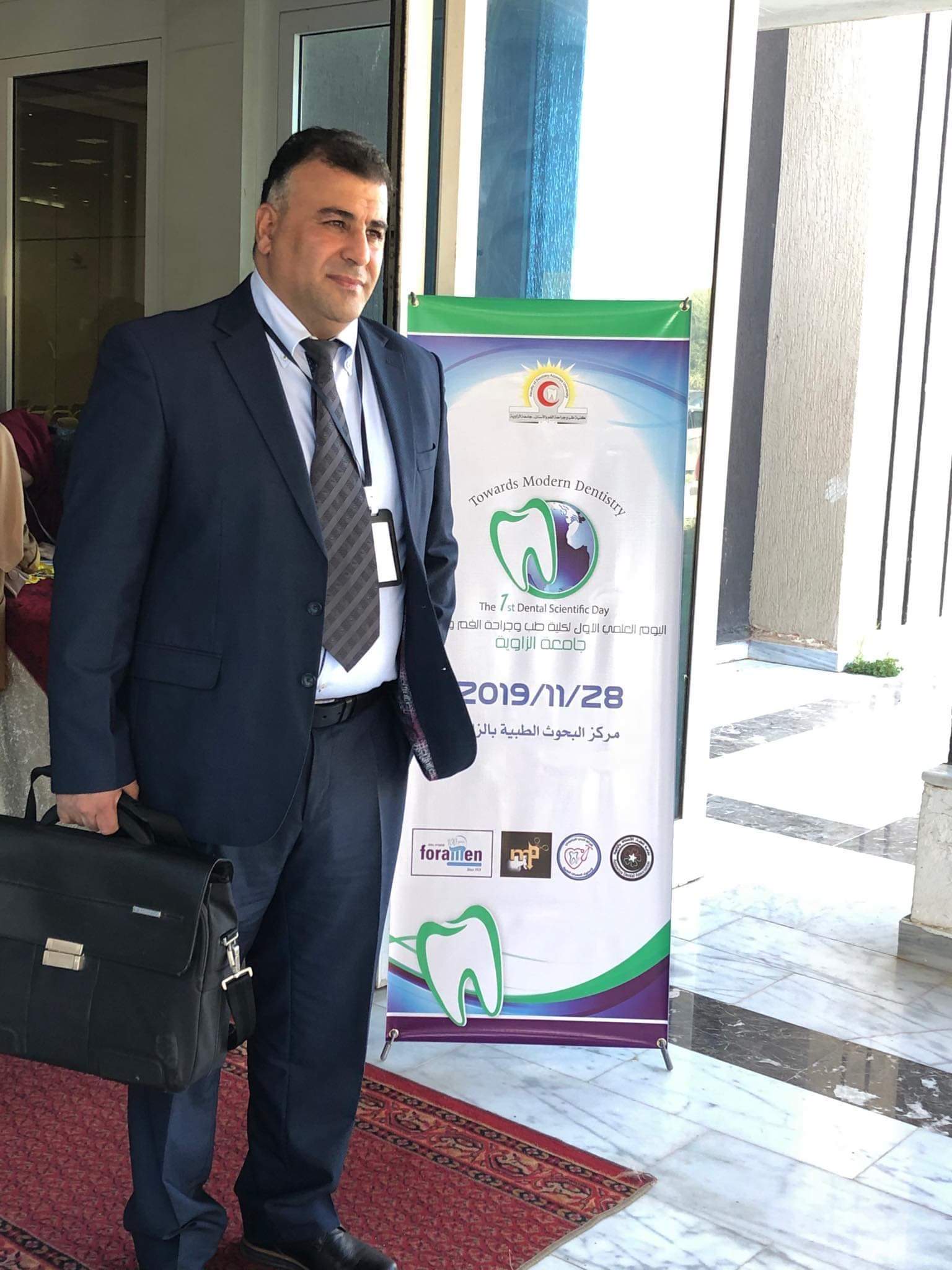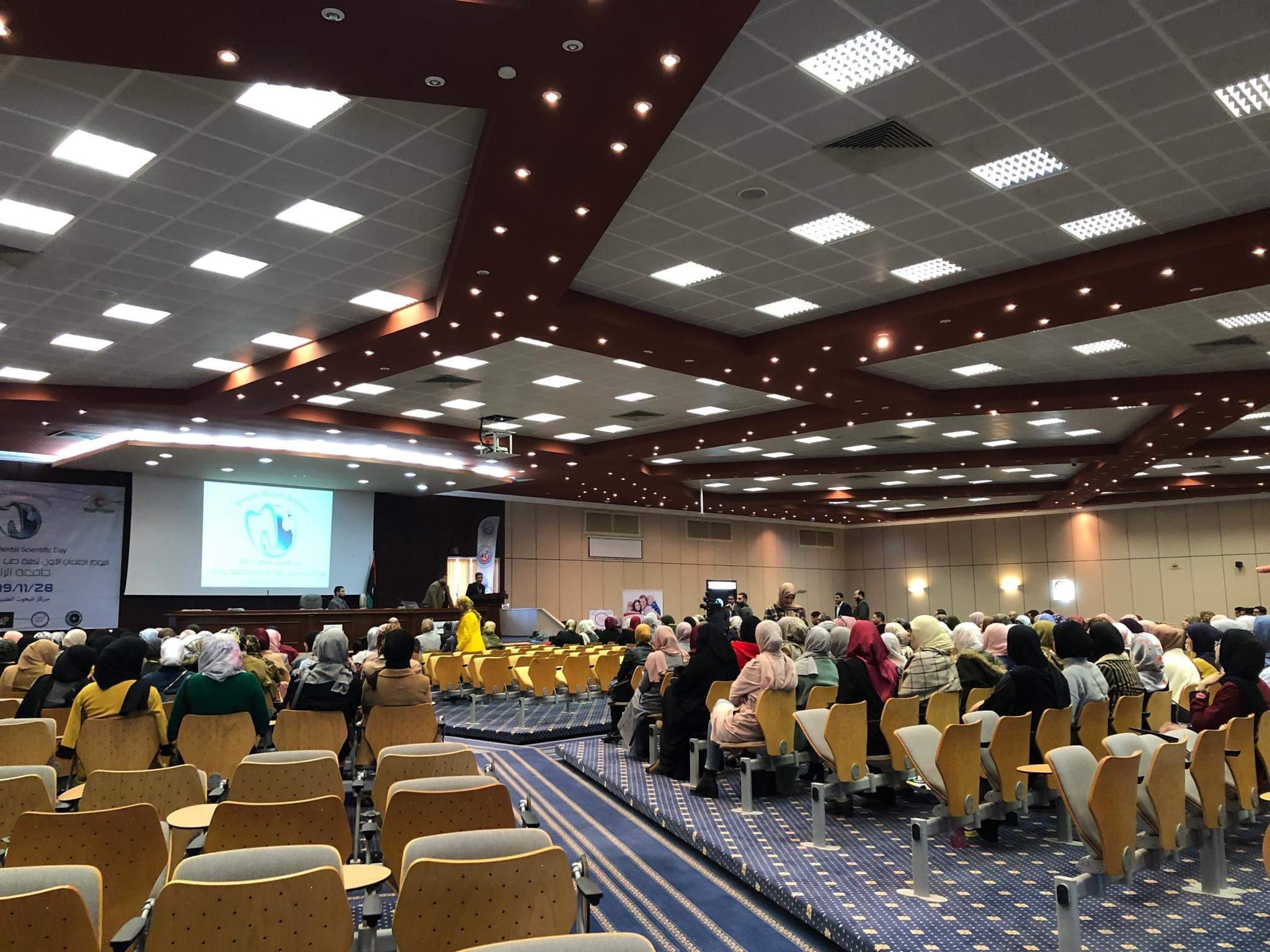 شهدت كلية طب وجراحة الفم والأسنان جامعة الزاوية بالتعاون مع نقابة أطباء الأسنان بالزاويه وبإشراف لجنة البحث العلمي بكلية طب الأسنان انعقاد اليوم العلمي الاول #بالمركزالوطني للبحوث الطبية اليوم الخميس الموافق 28 / 11 /2019 برعاية شركة المورد للمعدات الطبية ،شركة فورمان وشركة الحي الجامعي ،،وتضمن العديد من النشاطات محاضرات علمية ومسابقة الملصق الحائطي للمعيدات بالكلية وتم تكريم المشتركات والفائزين بهذه المسابقة ، وأيضاً أقيم معرض لعرض المنتجات الطبية  والأدوات والمعدات الطبية الخاصة بطب الأسنان،، نسأل الله التوفيق والسداد في النشاطات القادمة