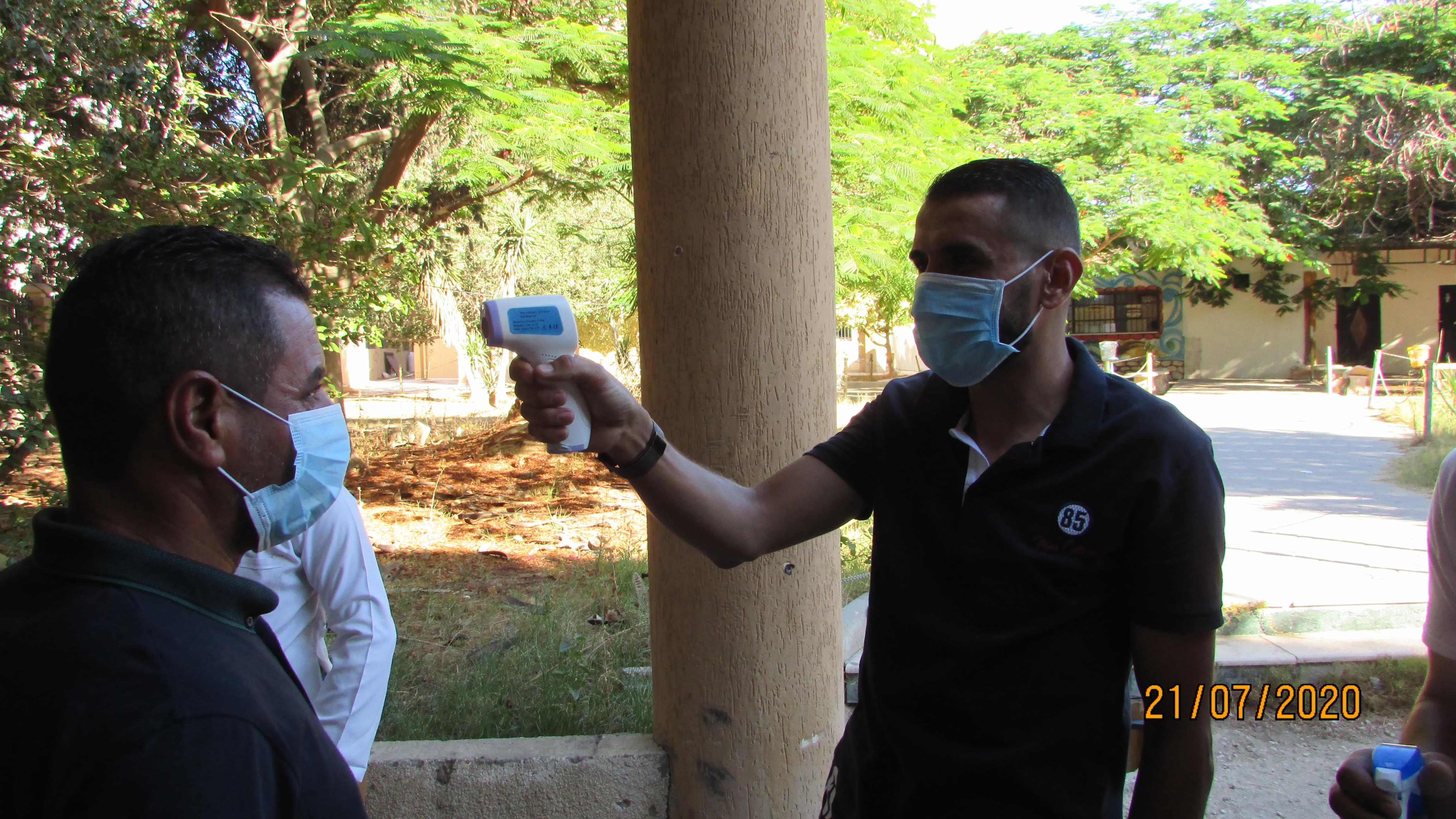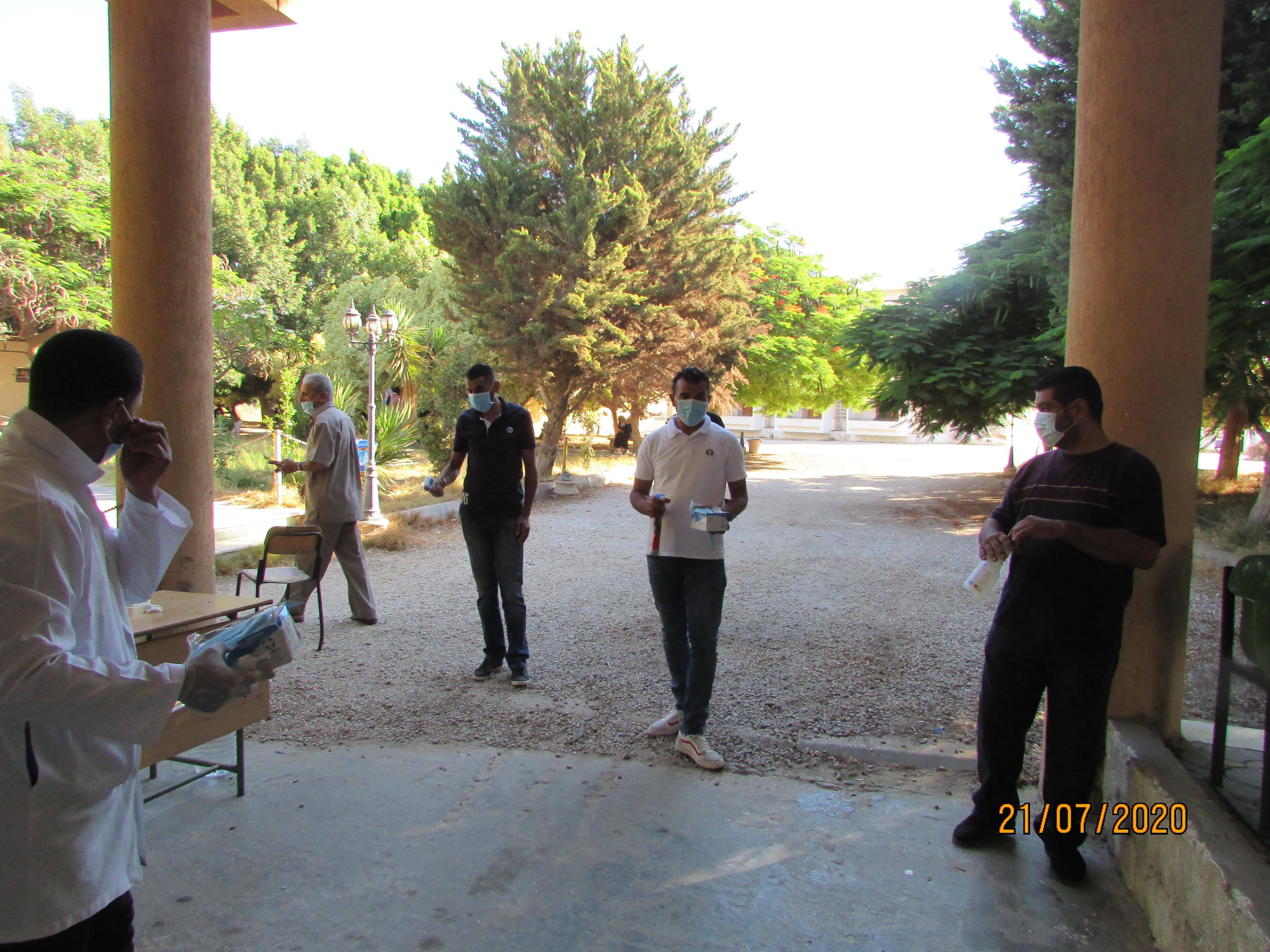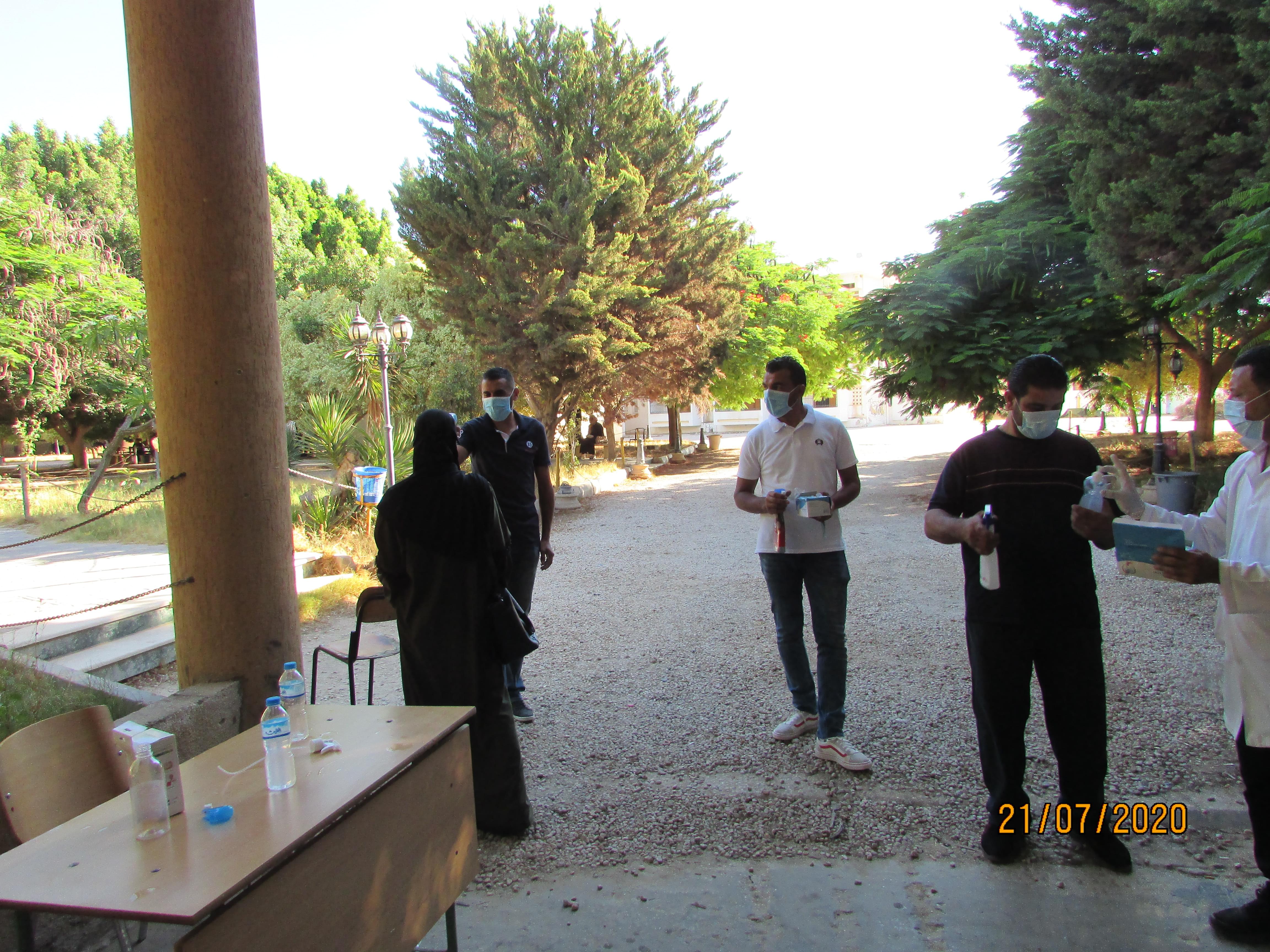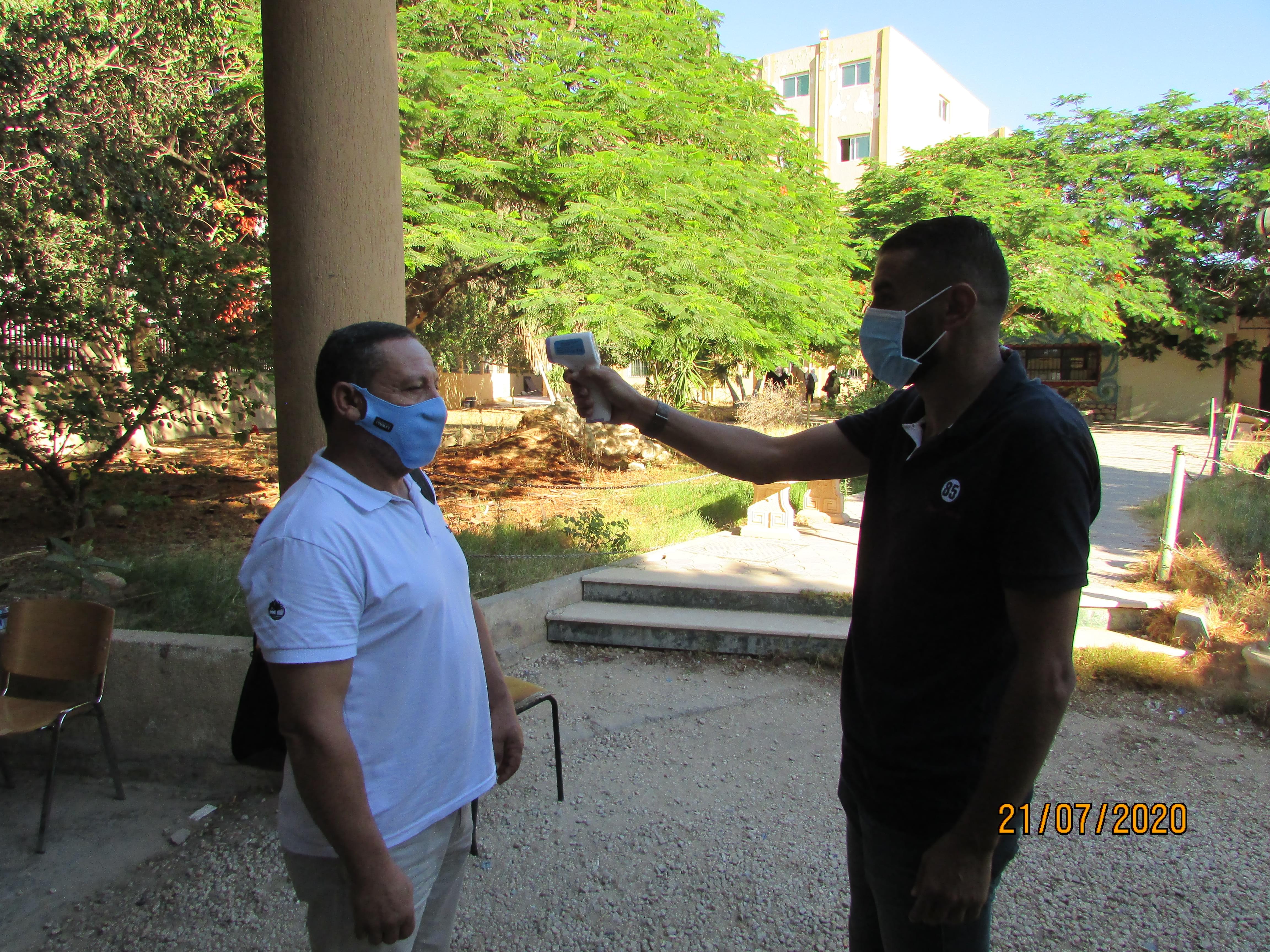 بتظافر جهود الموظفين و أعضاء هيئة التدريس  الخاصة بكلية التربية الزاوية تم توفير عدد  (  2  ) أجهزة قياس حرارة و مواد تعقيم و عدد من الكمامات يتم توزيعها في البوابة الرئيسة للكلية.