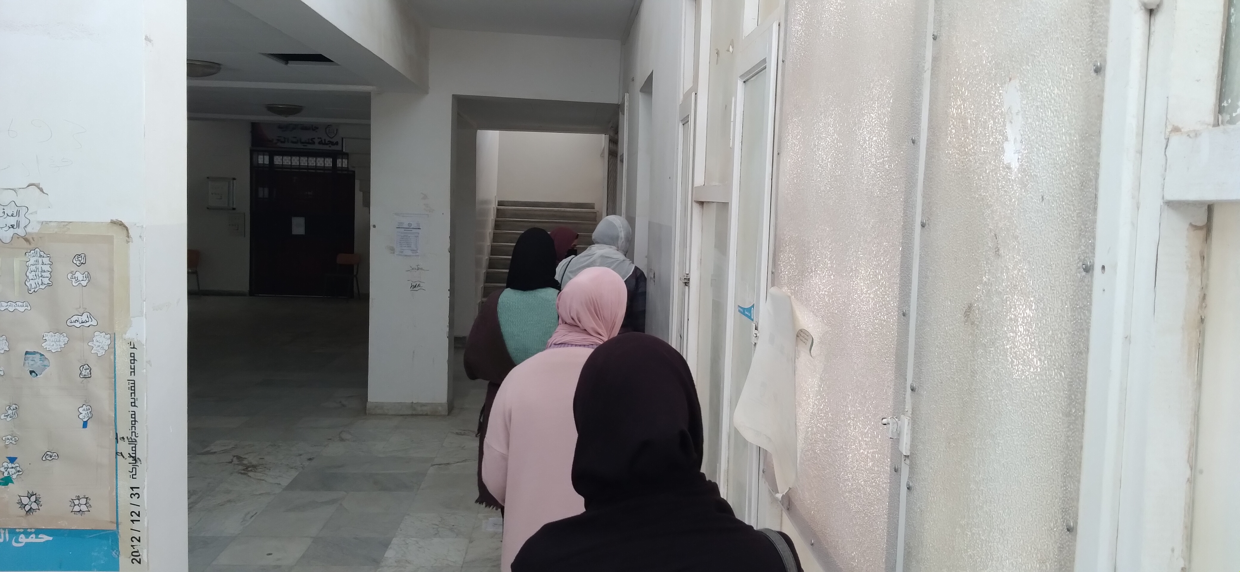 قام صباح اليوم السبت 2021/1/23م السيد مسجل عام الجامعة و الفريق المصاحب له بزيارة كلية التربية الزاوية للوقوف على سير عملية تجديد القيد لفصل الخريف 2021-2020 م.وحرصا على سلامة الطالبات و الموظفين و أعضاء هيئة التدريس بالكلية أكد السيد المسجل العام على ضرورة إتباع إجراءات السلامة العامة الموصى بها من لجنة الجائحة من إرتداء الكمامات و استعمال المعقمات وترك مسافة الأمان. وفي حالة عدم أخذ ذالك بعين الإعتبار سوف يتم إيقاف كل الاجراءات بالكلية.
