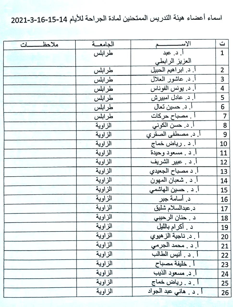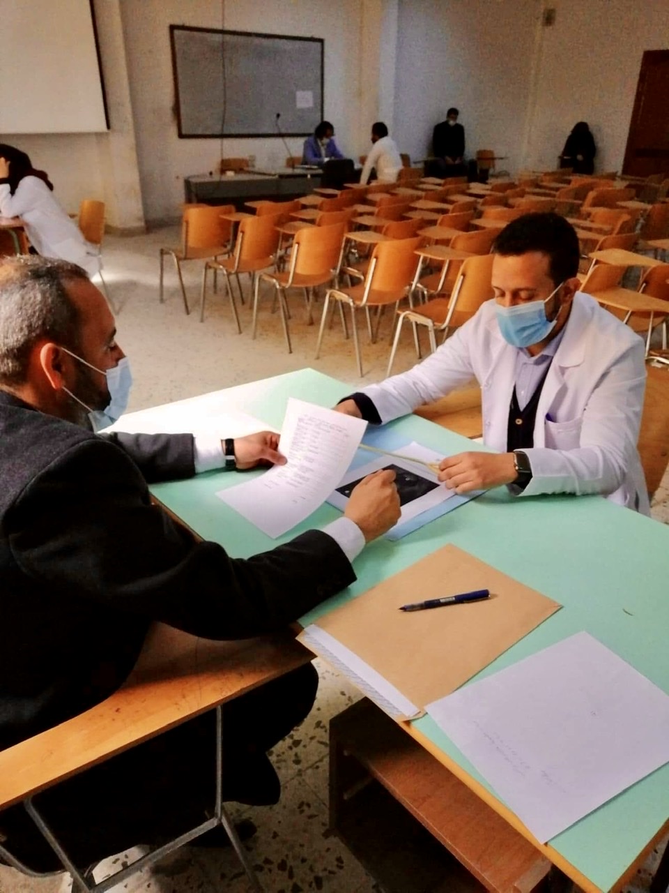 انطلاق الامتحان السريري الدور الثاني للسنة الخامسة الدفعة 14 ابتداء من 14-3-2021 الى يوم 16-3-2021 بإشراف أساتذة وأعضاء هيئة تدريس من جامعة طرابلس وجامعة الزاوية.