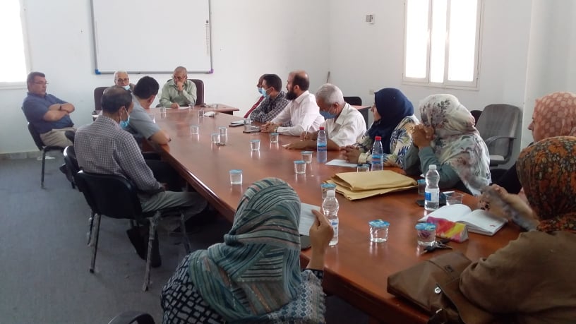 عقد مجلس كلية الاداب بالزاوية بجامعة الزاوية الثلاثاء 29 يوليو 2021م اجتماعا هاما حضر الدكتور محمود جدور وكيل الشؤون العلمية بالجامعة جانبا منه وقد تم خلال الاجتماع الهام طرح عدد من القضايا التي تهم الارتقاء بالعملية التعليمية باقسام كلية الاداب بالزاوية كما تم التعرض لبرنامج الجودة بالكلية والاستعداد لاستقبال لجان التفتيش والتدقيق المتعلقة بالجودة كما تم التعرض الى عدد من المواضيع المتعلقة بدفع العملية التعليمية نحو براحات التالق والابداع وقد استمع السيد وكيل الشؤون العلمية بالجامعة الى عدد من الملاحظات والاراء والمقترحات المقدمة من قبل رؤساء الاقسام العلمية ومدراء المكاتب والادارات المختلفة بكلية الاداب واعدا بالعمل معا من اجل تذليل الصعاب وباستمرار مثل هذه اللقاءات خدمة للطلاب والاساتذة والعملية التعليمية قبل ان يغادر للالتحاق باجتماع ثان في كلية الهندسة وقد تواصل عقب ذلك الاجتماع الهام الذي اشار فيه الدكتور ابراهيم سليمان الى اهمية بذل الجهود من اجل انجاح العملية التعليمية وانجاح الفصل الصيفي المقترح اقامته لتعويض العملية التعليمة بسبب مخرجات ازمة كورونا كما ناقش الحاضرون مواعيد الفصل الدراسي القادم وبرنامج الجودة وتصحيح البيئة المحلية للكلية و الاهتمام ببعض مرافقها وبعض بنود ما يستجد من اعمال
