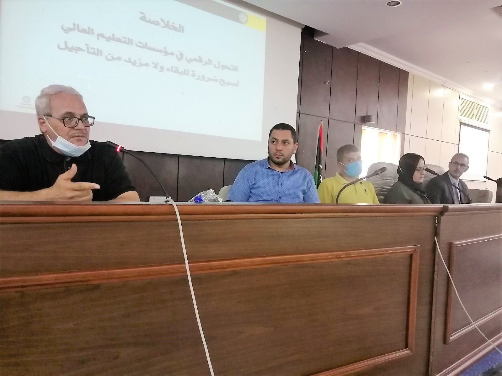 اختتمت ظهر هذا اليوم الاربعاء الموافق 22/9/2021 بقاعة المركز الليبي للبحوث الطبية اخر ورش عمل منتدى التعليم العالي والبحث العلمي والذي سينعقد تحت شعار تحول التعليم العالي الليبي" الدور المستقبلي والتحديات التي تواجه المؤسسات الاكاديمية" نهاية شهر اكتوبر القادم على المستوى الوطني كانت ورشة عمل هذا اليوم بعنوان التحول الرقمي الطريق للدخول للاقتصاد القائم على المعرفة تم بدء ورشة العمل بعرض تقديمي تناول بشكل اساسي موضوع التحول الرقمي في مؤسسات التعليم العالي قدمه فريق ادارة الورشة المشكلة بقرار من رئيس الجامعة والمكونة من د.محمد البي، أ.محمد رمضان، أ.احمد سليمان، وأ.مفيده النجار اتسمت اجواء الوشة بمشاركة نخبة رائعة من اعضاء هيئة التدريس بجامعة الزاوية وبنهاية الورشة قام السيد وكيل الجامعة للشؤون العلمية أ.د.محمود جدور باختتام أعمال ورش عمل هذا المنتدى والذي يعتبر خطوة من خطوات الاصلاح في مؤسسات التعليم العالي بليبيا وتزامناً مع جهود وزارة التعليم العالي بحكومة الوحدة الوطنية لتحول المؤسسات التابعة لها رقمياً لتجويد العملية التعليمية ومواكبة التغير التكنولوجي المتسارع في ظل الثورة الصناعة الرابعة.