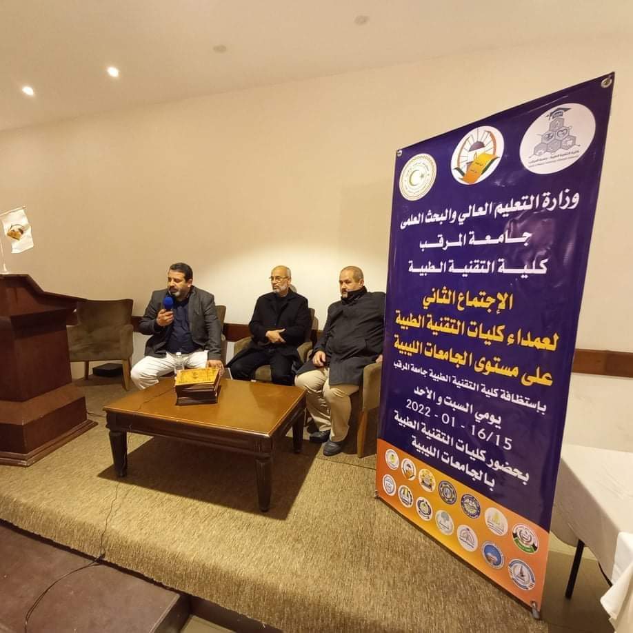 اختتمت أعمال الإجتماع الثاني لكليات التقنية الطبية بالجامعات الليبية بمدينة الخمس بحضور السيد عميد كلية التقنية الطبية جامعة الزاوية رئيس لجنة كليات التقنية الطبية بالجامعات الليبية والسيد وكيل الشؤون العلمية بجامعة المرقب وعمداء كليات التقنية الطبية بالجامعات الليبية وعددهم 14 عشرة كلية ، حيث اتفق الحضور على عدة نقاط من شأنها تعزيز كفاءة الكليات وتذليل الصعاب والعوائق التي تواجه سير العملية التعليمية بها .