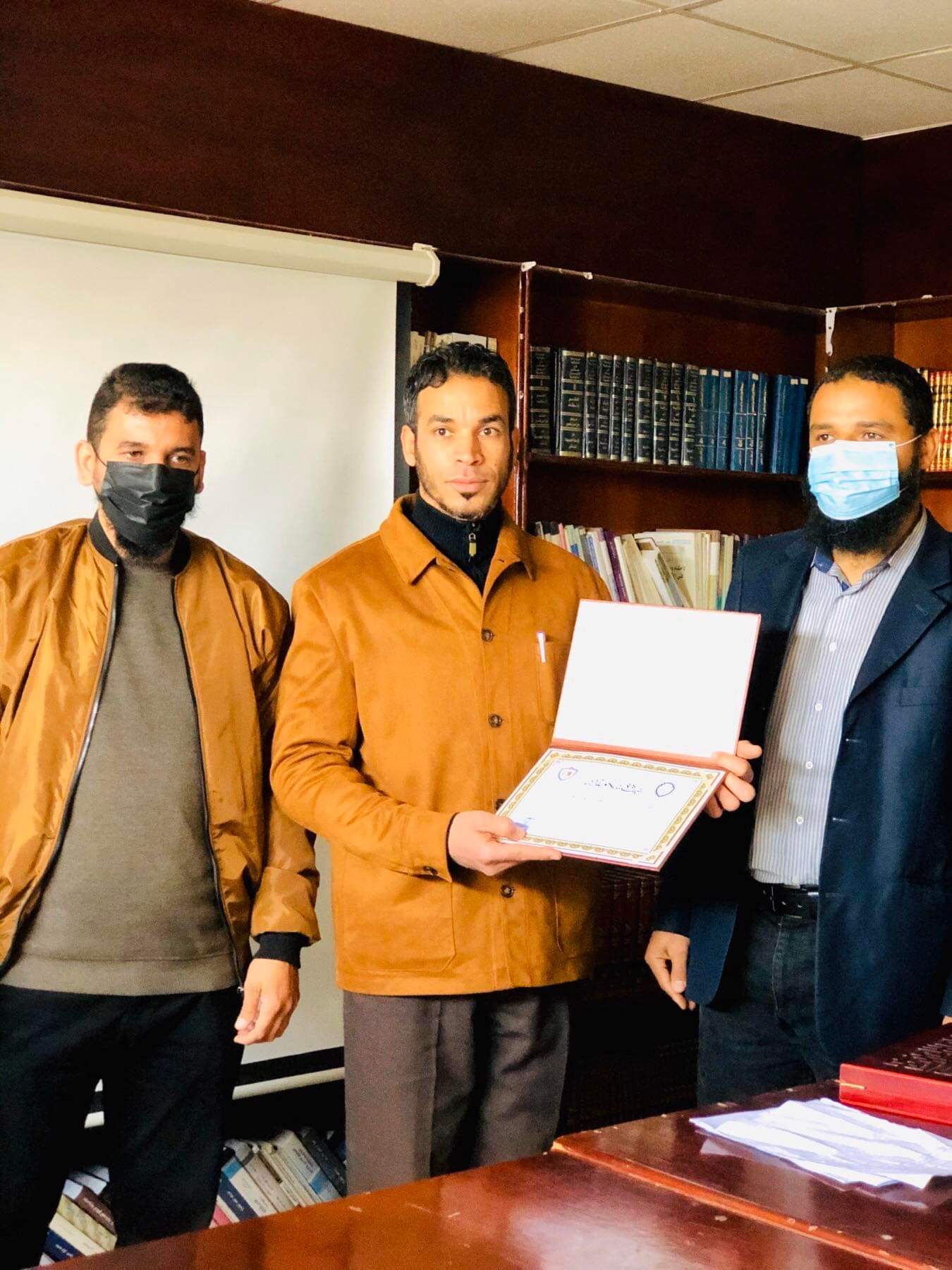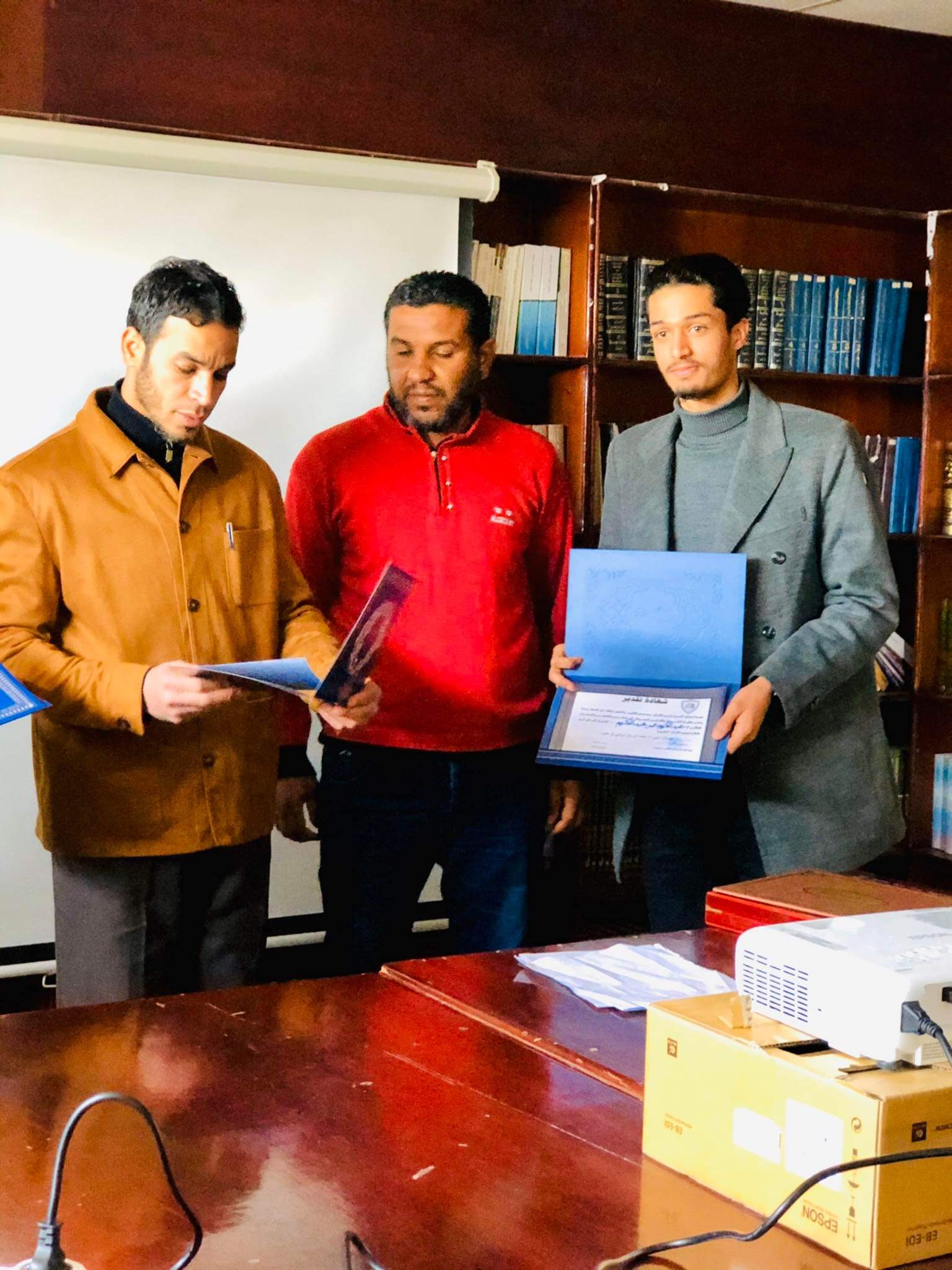 وتخلل الحفل تقديم شهادة تقدير ودرع للأستاذ الفاضل عبد الفتاح سالم كما تم تكريم الطلبة المشاركين في مسابقة القرآن الكريم الذي أقامتها جامعة الزاوية الأيام الماضية وتميزت فيها كلية الشريعة والقانون بالتراتيب الثاني والثالث