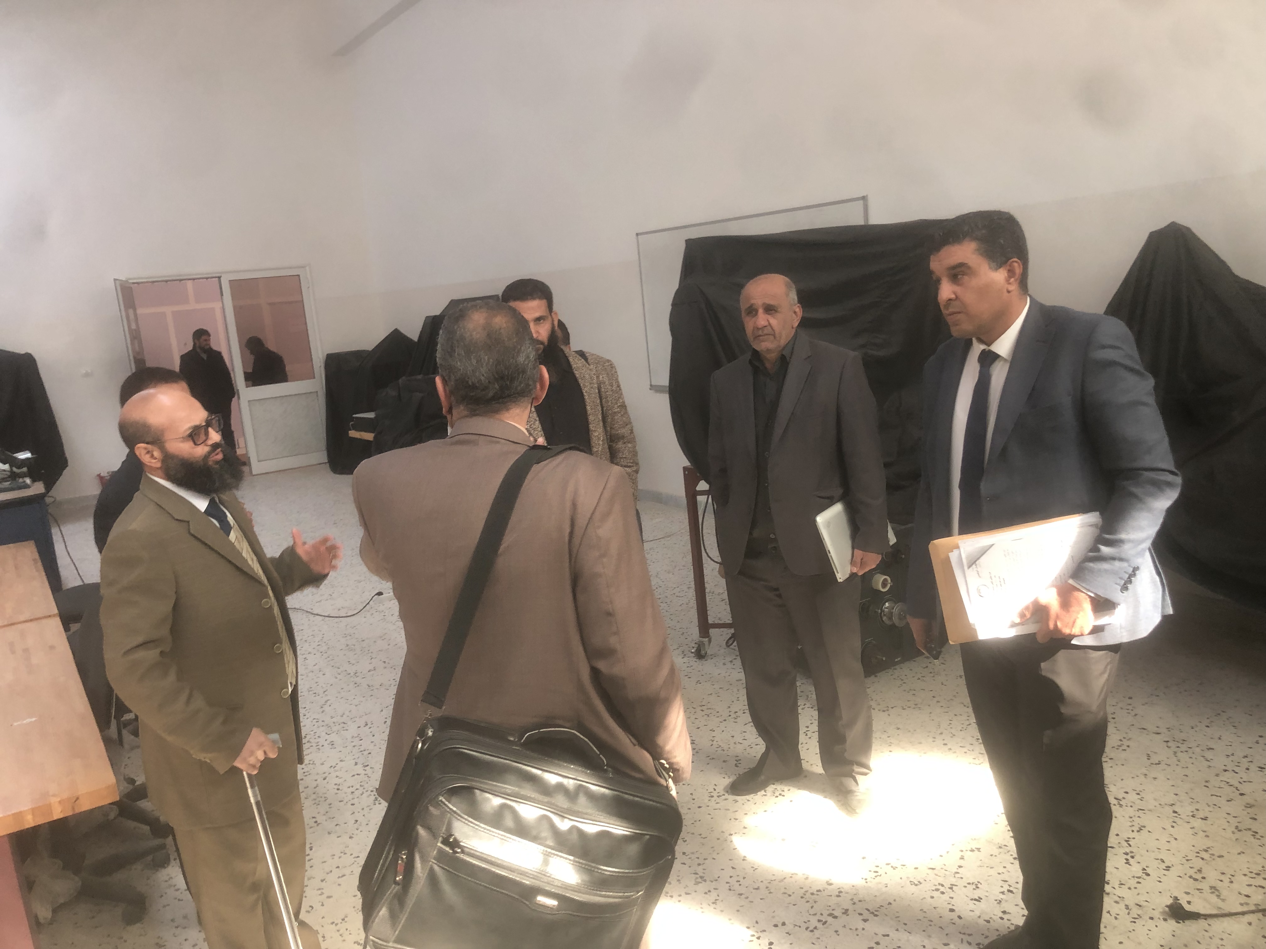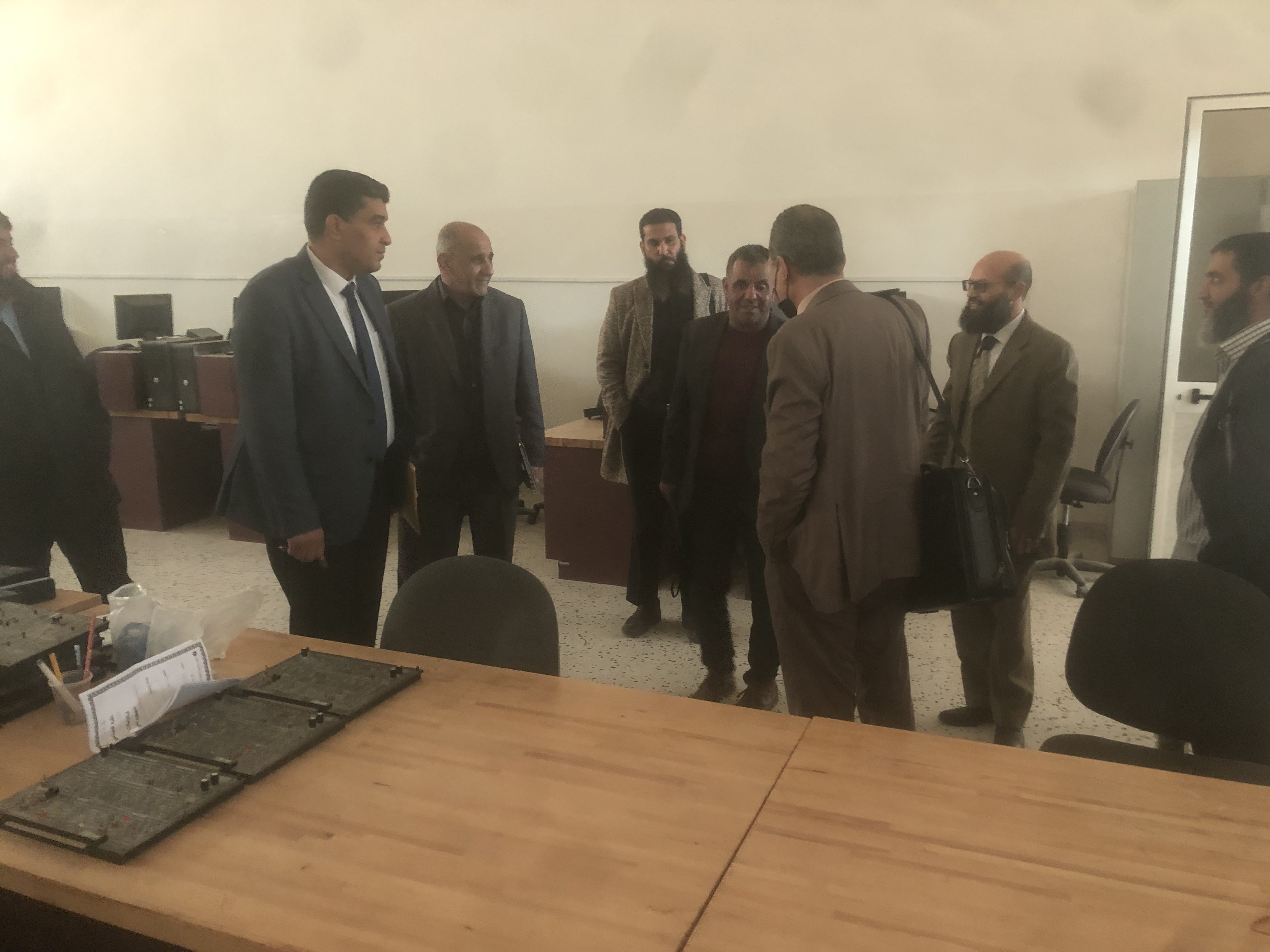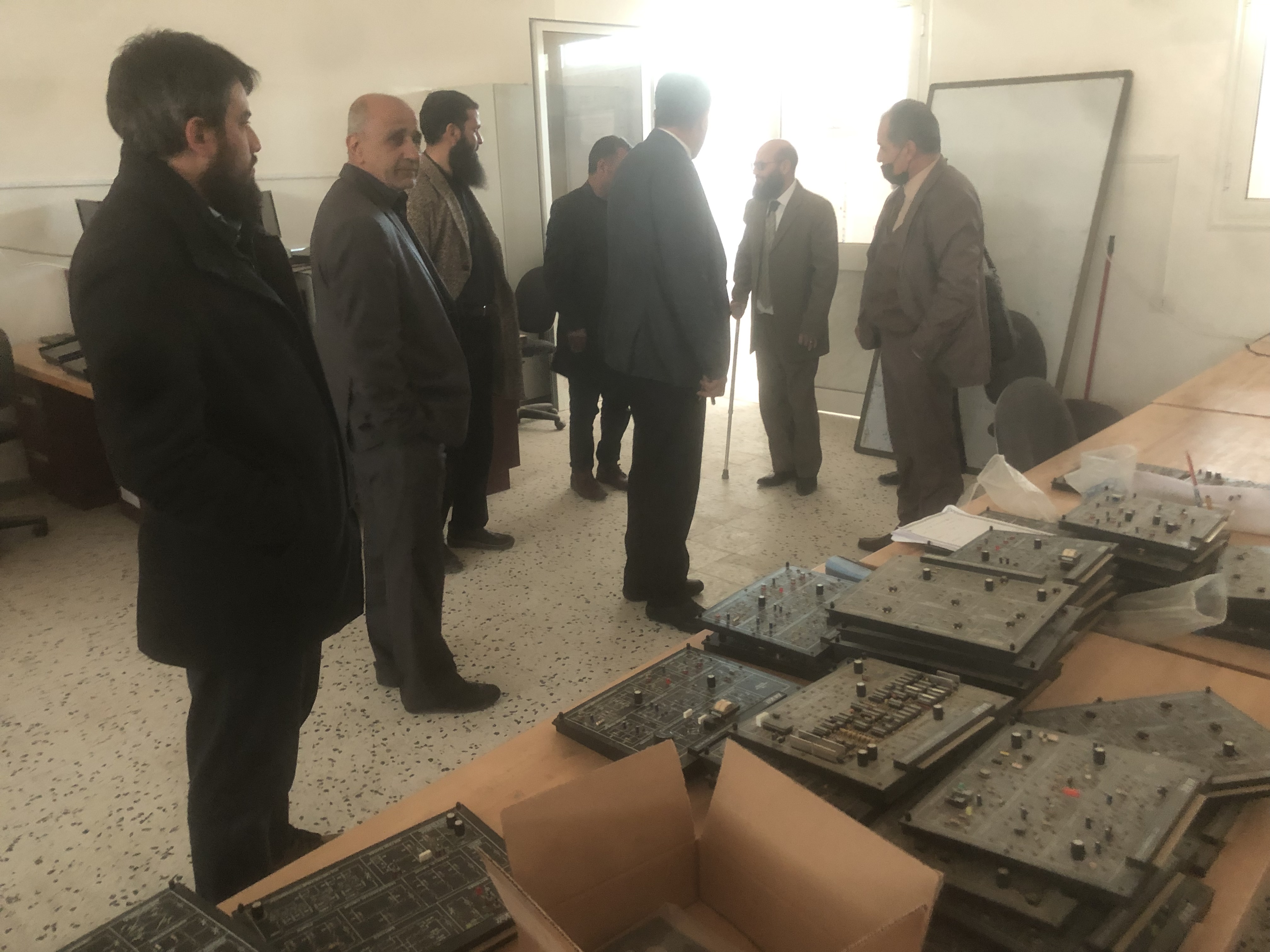 تجول الوفد داخل قسمي الكهربائية والميكانيكا ومعاملهم  للاطلاع على برامج الدراسات العليا وعقد العديد من الاجتماعات المطولة .